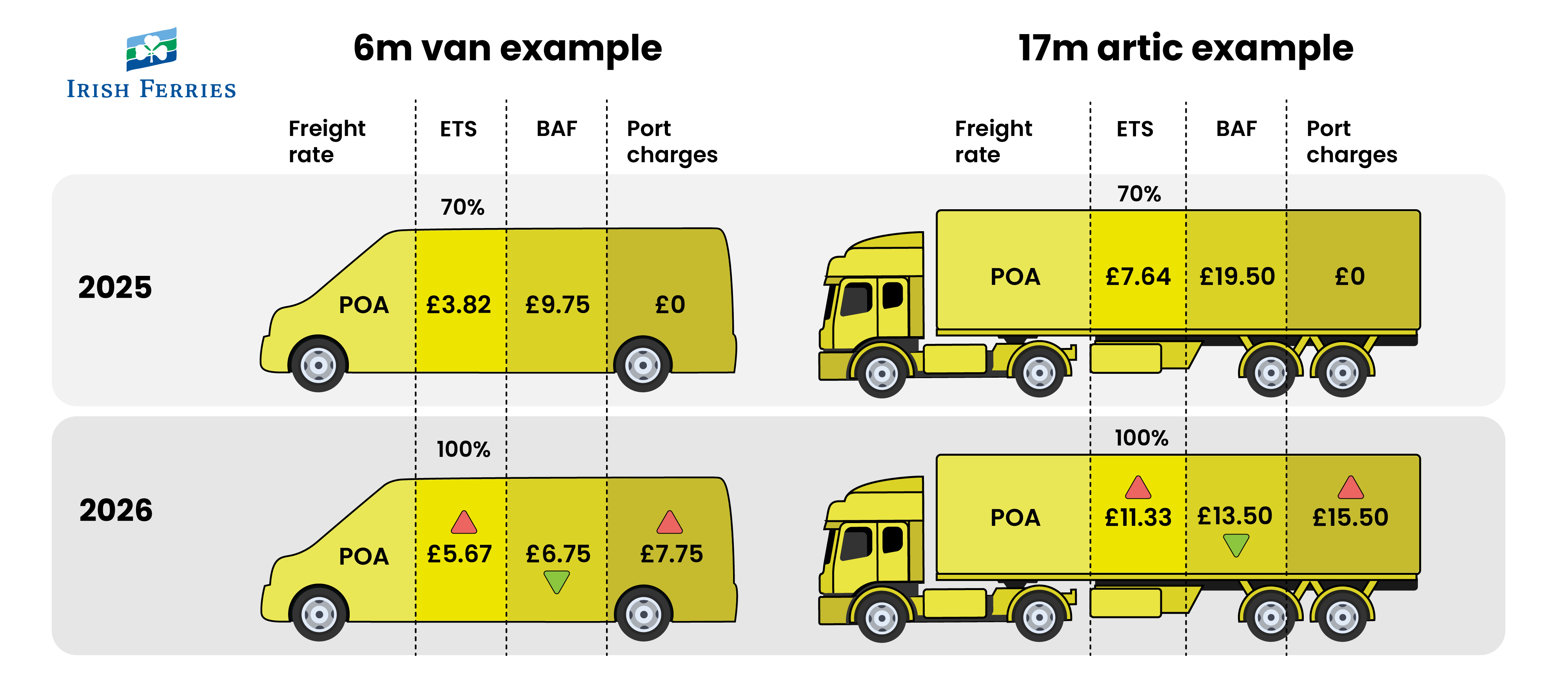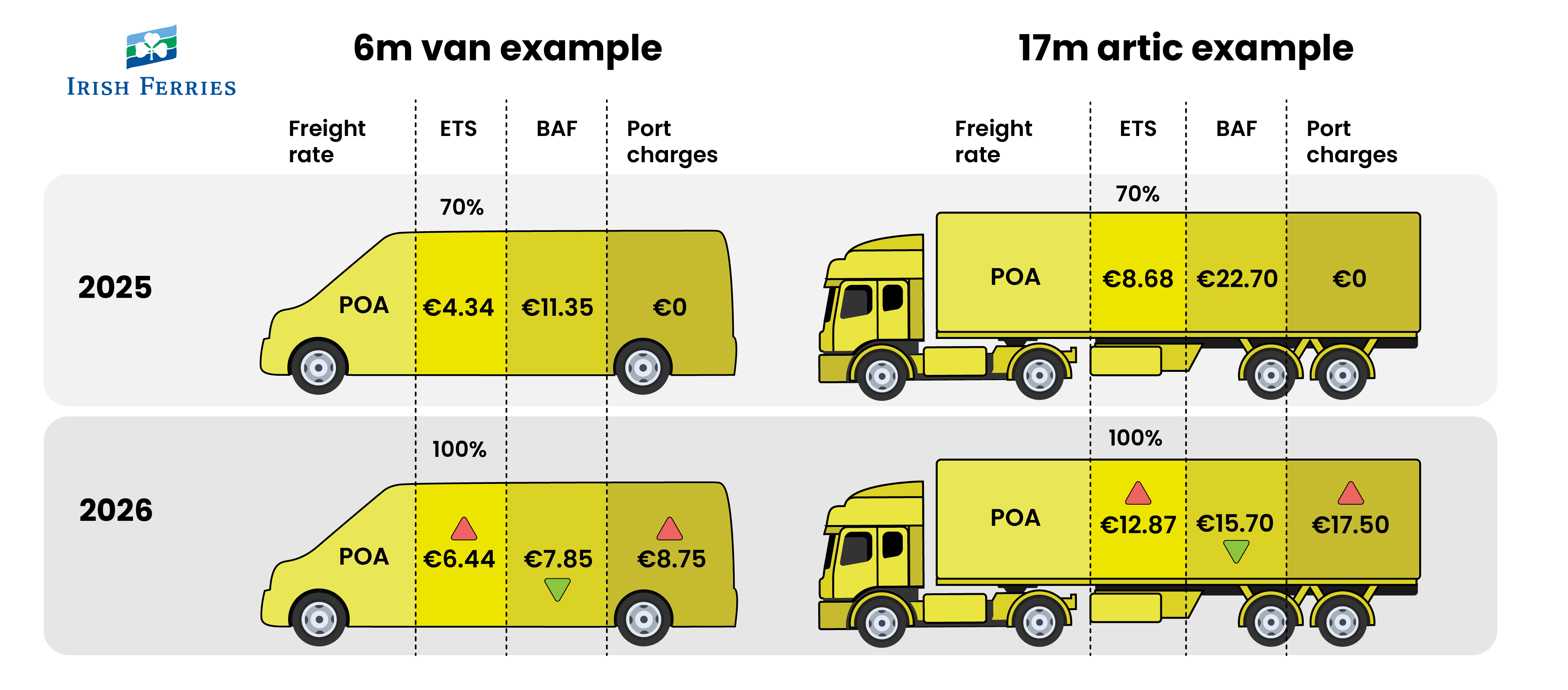 Since 1st January 2026, DFDS, Irish Ferries and P&O Ferries have introduced a new Dover Strait port charge (Dover - Calais and Dover - Dunkerque). This is in addition to ETS (100%) & BAF charges, and inflation increases.